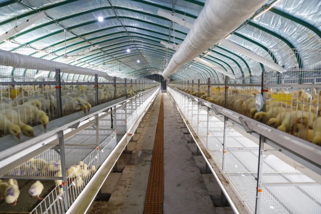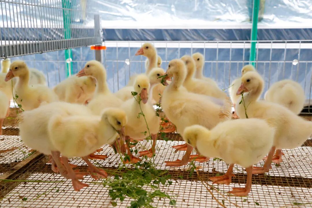 依托设施优势,王亚男团队创新“分段式生态养殖法”,通过“雏鹅混养、成鹅林下放养,鹅粪肥田种苜蓿、苜蓿反哺喂养”,形成闭环循环模式,使雏鹅脱温存活率超90%,实现降本提质。