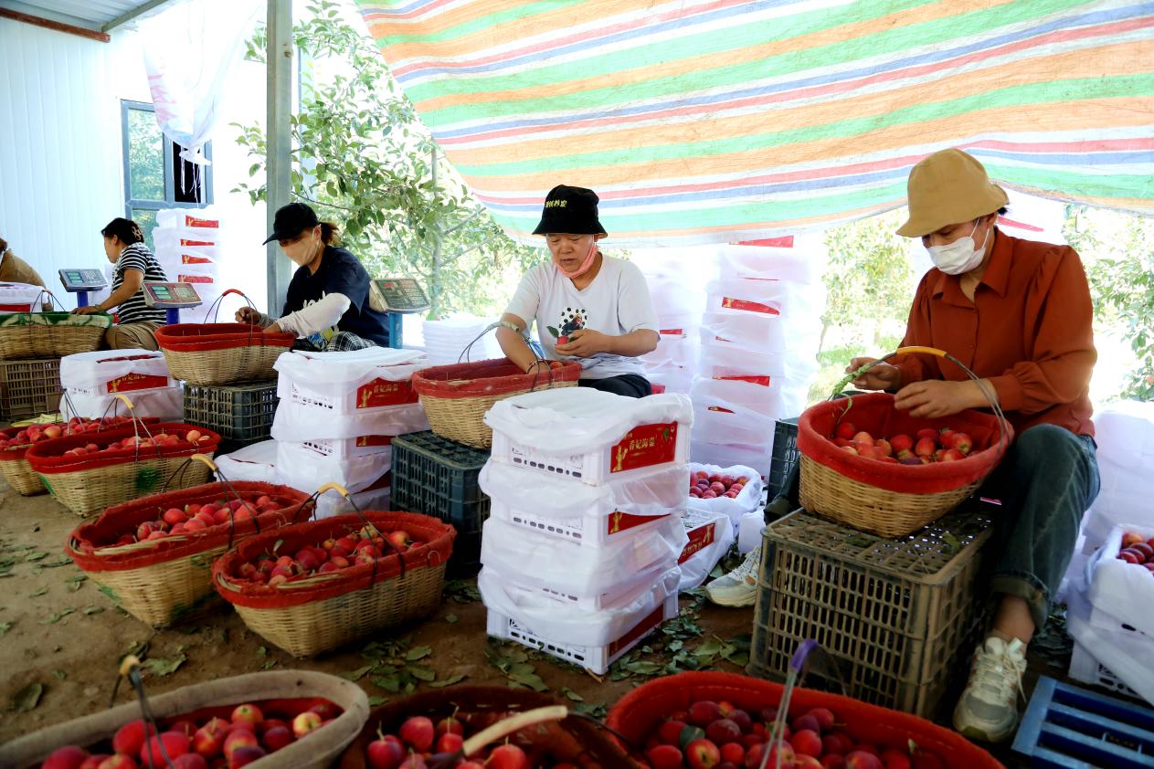果农正忙着采摘香妃海棠。王芳芳 摄