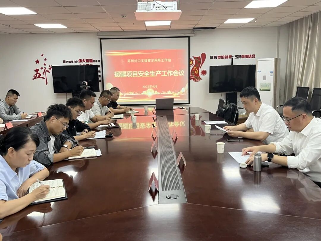 为严格落实省前指关于援疆项目安全生产检查的专项部署要求,9月15日,江苏援伊・苏州工作组对霍尔果斯市在建及建成援疆项目进行了安全生产检查,并召开安全生产工作会议。霍尔果斯经开区党工委委员、管委会副主任、霍尔果斯市委副书记、苏州工作组组长孙晓江,霍尔果斯市委常委副市长、苏州工作组副组长袁小骏参加了此次活动。