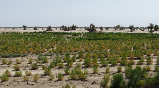 第一师阿拉尔市防沙治沙示范区十四团段成片的梭梭。潘许摄
