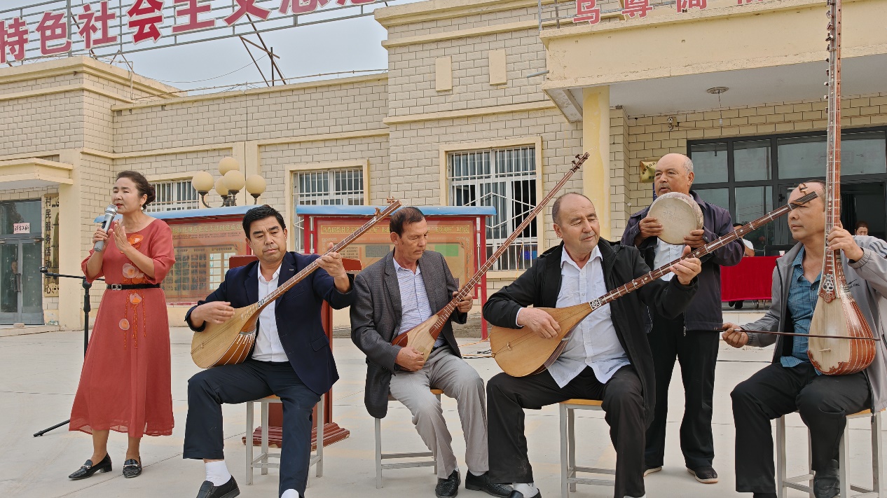 为了让宣讲更接地气、更有感染力,此次活动进行了创新采用“宣讲+文艺”形式开展。每个村都准备了不同的节目,乌尊阔恰村组织民间艺人演唱了《我和我的祖国》,台下群众跟着节奏拍手互动,不同语言的歌声、笑声交织在一起。活动期间,村民们还分享了自家的生活变迁:“以前农闲时大家交流少,现在一起参加技能培训、文化活动,不仅学了本事,还成了好朋友,日子越过越有滋味。”朴实的话语里满是对团结发展的认同与期盼。