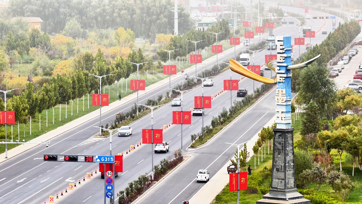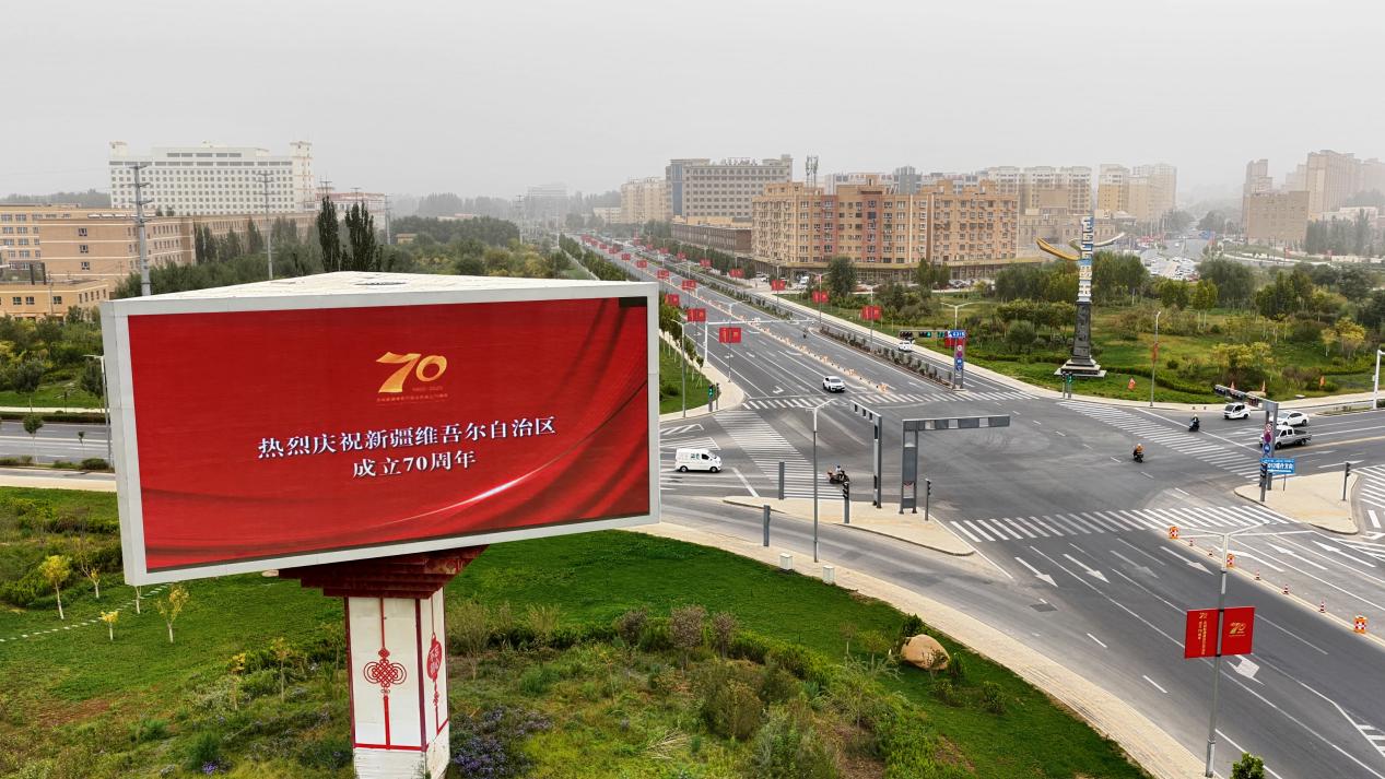 在新疆维吾尔自治区成立70周年即将到来之际,墨玉县大街小巷被鲜艳的“中国红”装扮得格外靓丽,处处洋溢着喜庆祥和的节日氛围。
