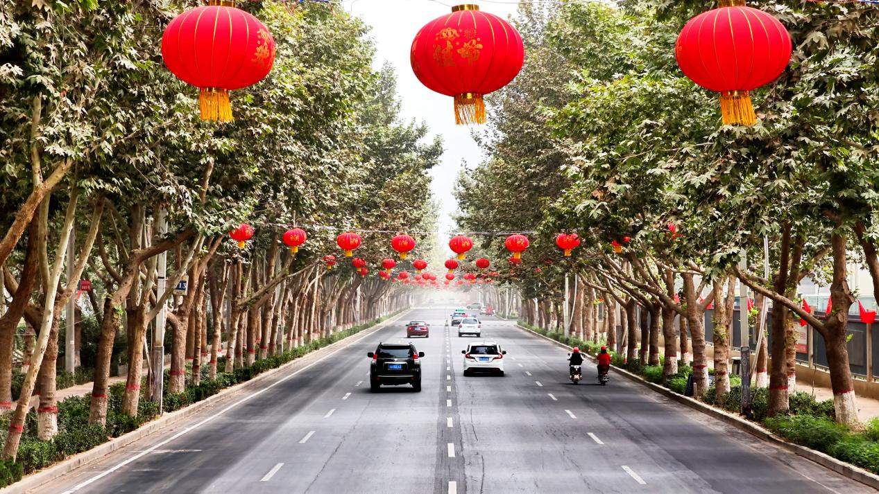 县人民广场同样是一片欢乐的海洋。精致的中国结与通红的灯笼相互映衬,走廊两侧、林木枝干间,喜庆元素无处不在。漫步广场,不少群众被浓厚氛围感染,“一出门就能感受到这种浓浓的中国红,整个人一下子都精神起来了。”一位散步的群众笑着说道。