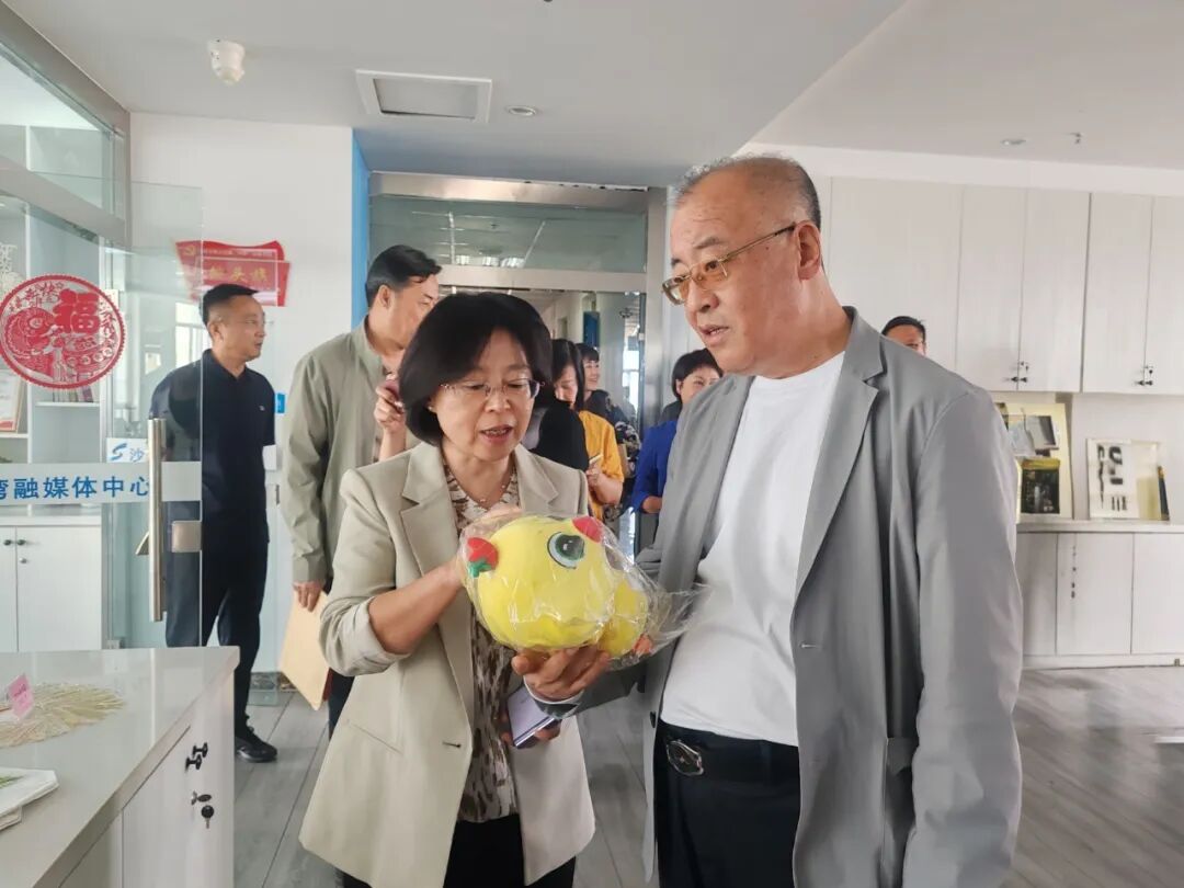 鞍山市新闻传媒中心一行观摩沙小吉城市形象IP打造情况。  焦祖卿摄