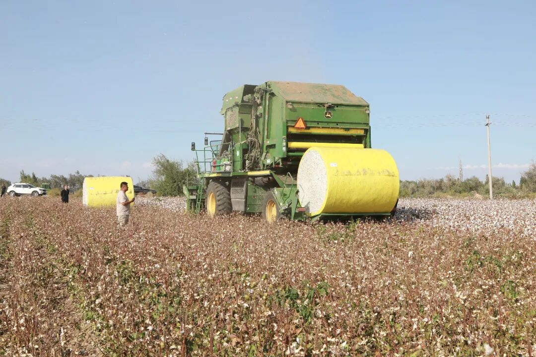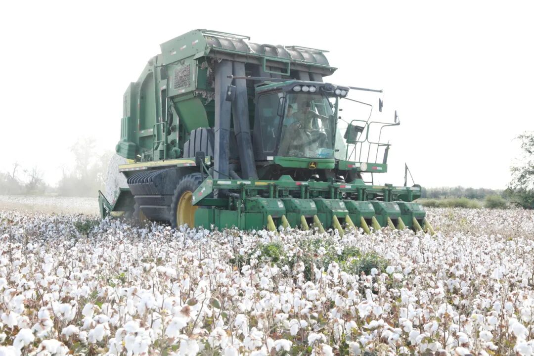 9月15日,四师可克达拉市六十三团十三连棉田里,伴随着马达的轰鸣声,一台采棉机来回穿梭,进行棉花采收、打包、出仓一条龙作业。