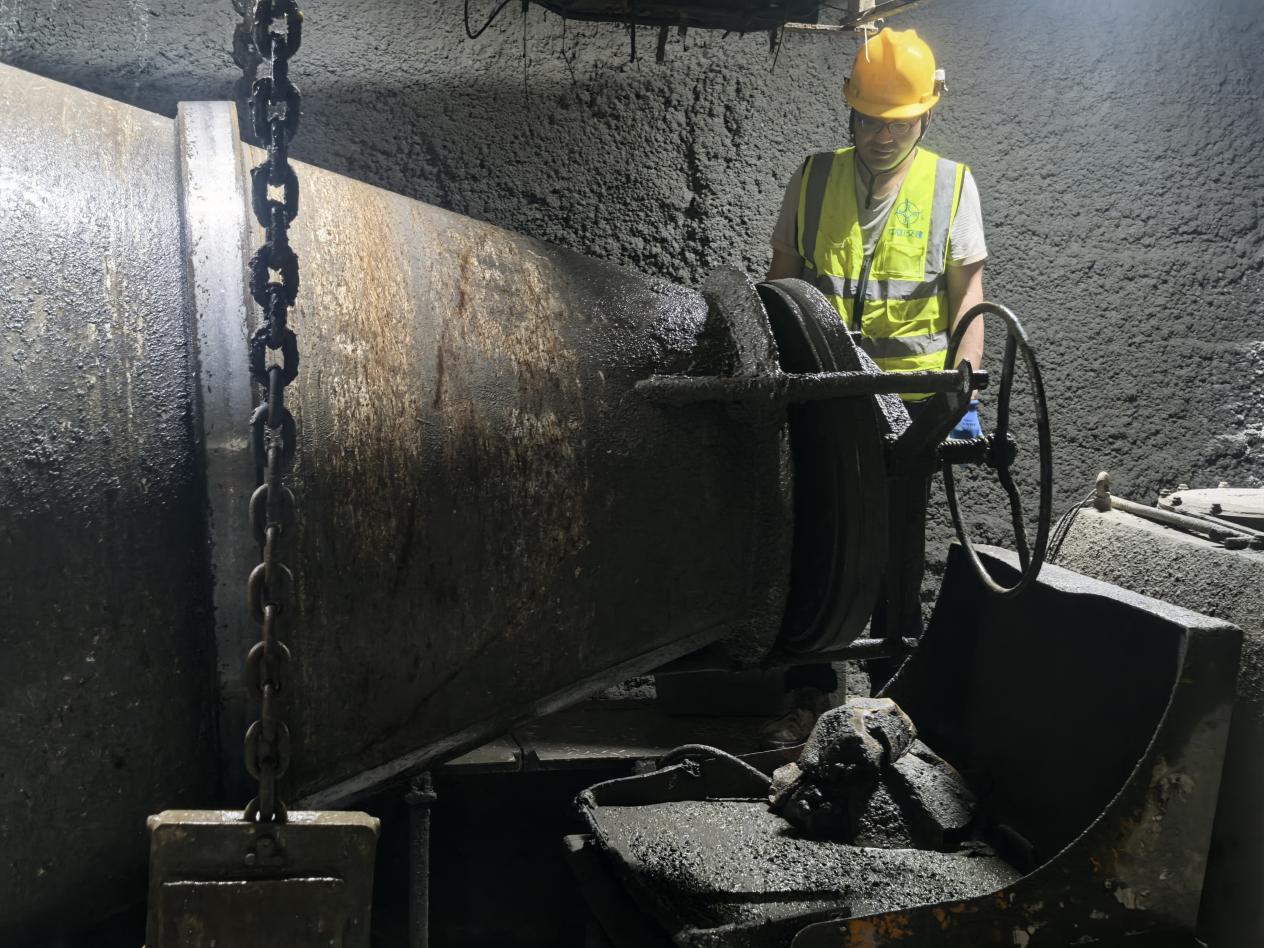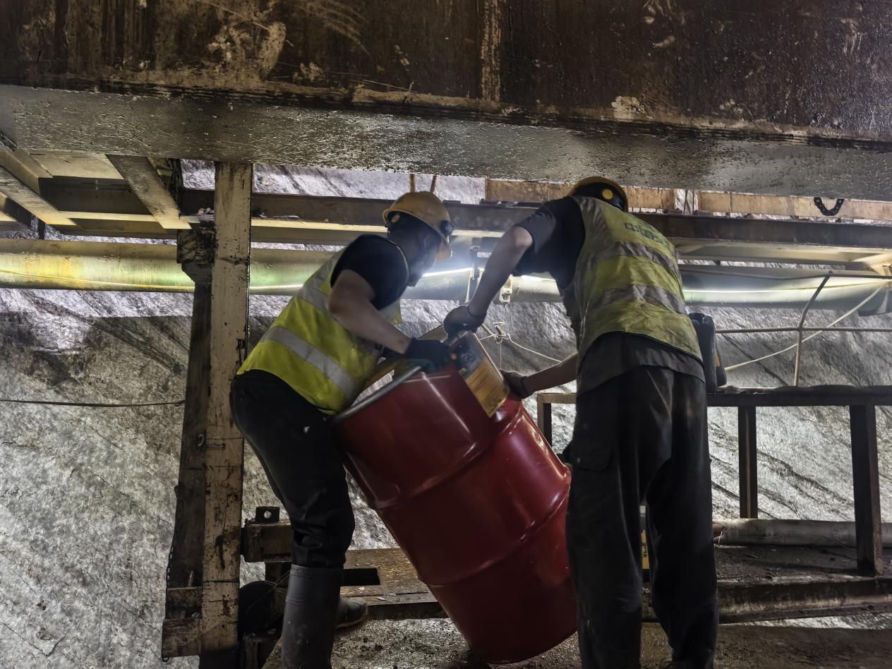 G219线昭苏至温宿公路西天山特长隧道内,维保人员在转运黄油润滑脂,保证TBM主机润滑密封(通讯员 康永特 摄)