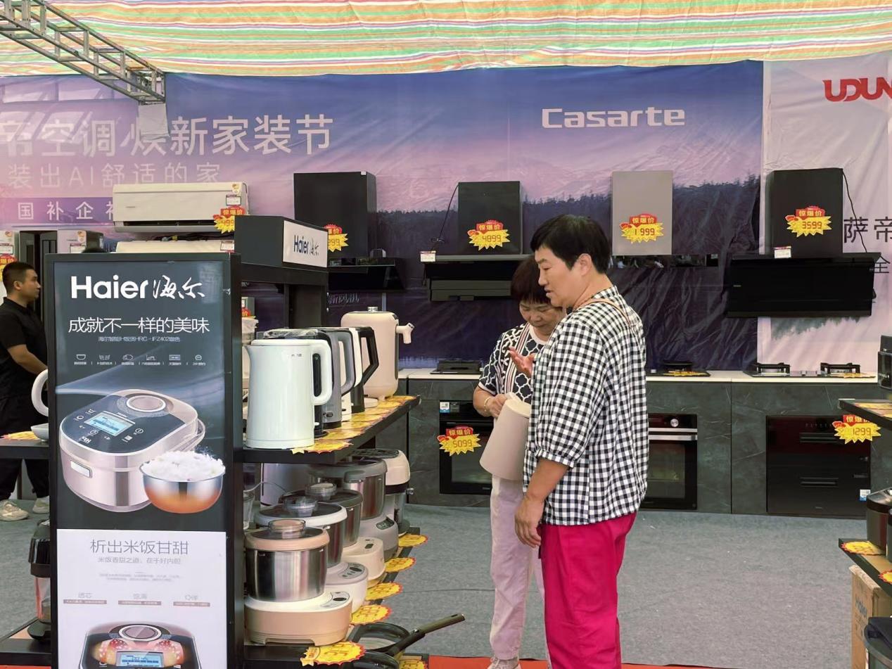 市民在家电展销区选购烧水壶。阿迪力 摄