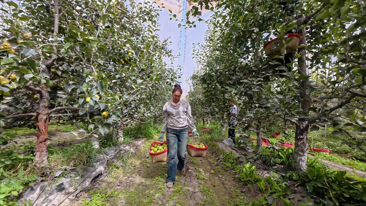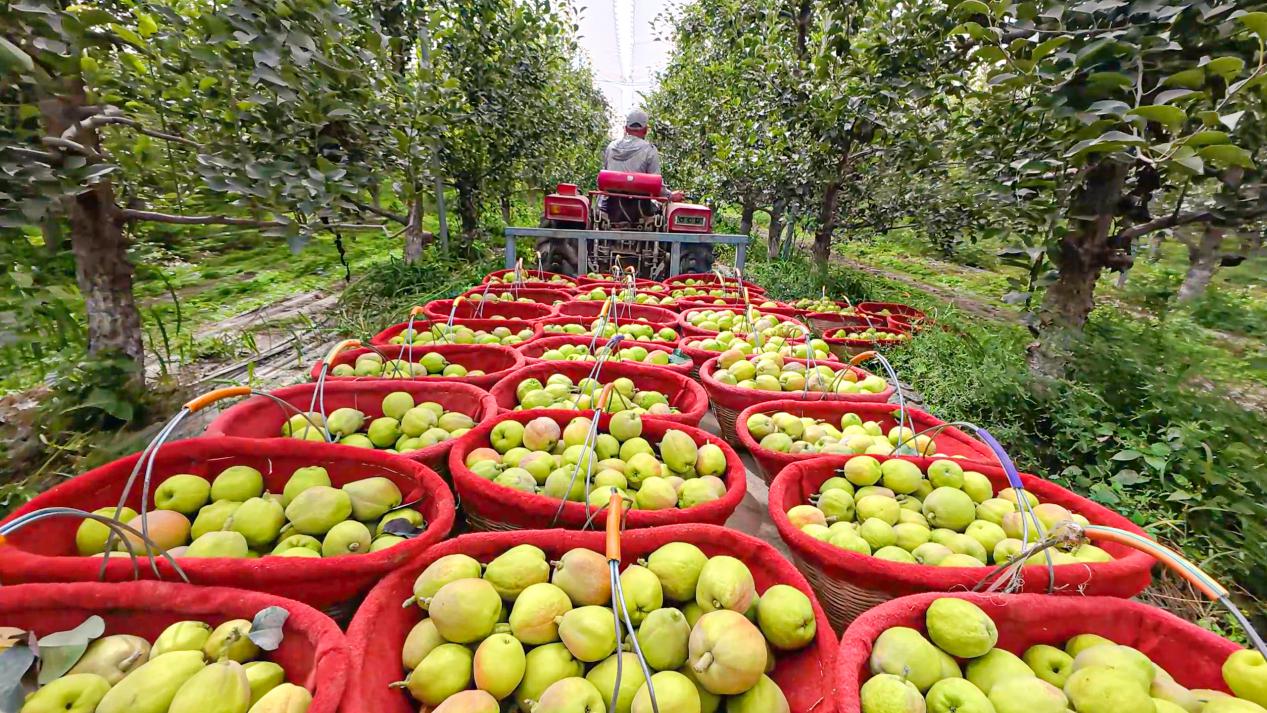 为了顺应市场需求、推动产业升级,九团梨花镇除了用新模式和新技术,还积极引导职工对果园进行精耕细作和科学管理。通过“党支部+基地+职工”创新模式,为职工提供专业种植服务,保障果园高产优质。
