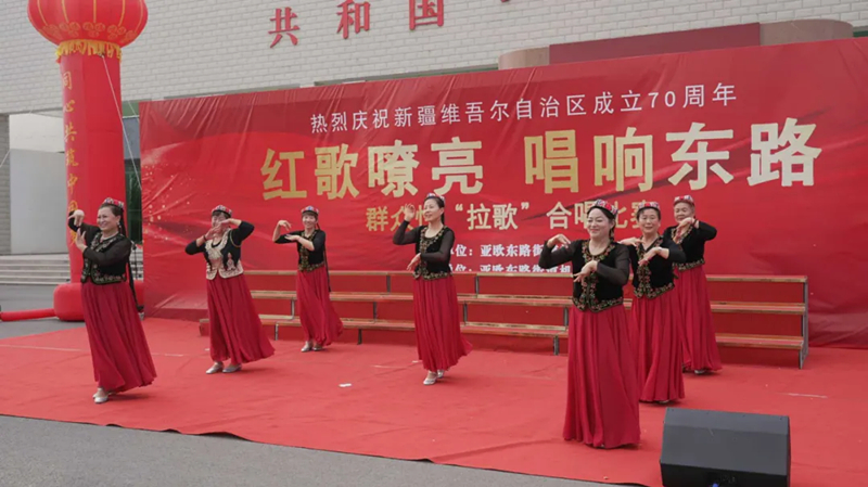 这样的邻里互动每天都在上演。为庆祝自治区成立70周年,霍尔果斯各乡、街道举办了拉歌会和民族团结一家亲活动,大家一起唱歌跳舞、包饺子、话家常,欢快的笑声与掌声交织,满是对家乡的热爱、对团结的珍视。
