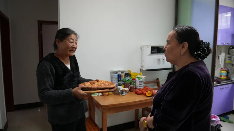 (帕丽旦·条力给邻居马玉新送馕饼)