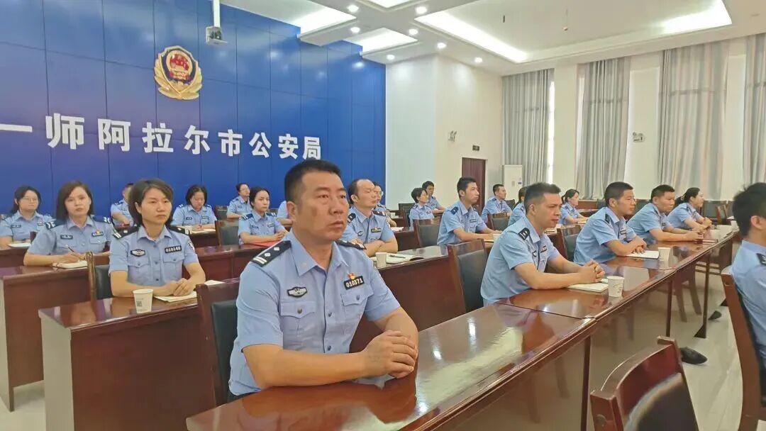 第一师阿拉尔市公安局组织民警收看新疆维吾尔自治区成立70周年庆祝大会直播。曾维 摄