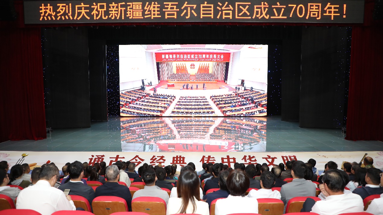 9月25日上午,新疆维吾尔自治区成立70周年庆祝大会举行,新疆生产建设兵团第一师阿拉尔市各族干部职工群众第一时间收听收看现场直播,反响热烈。