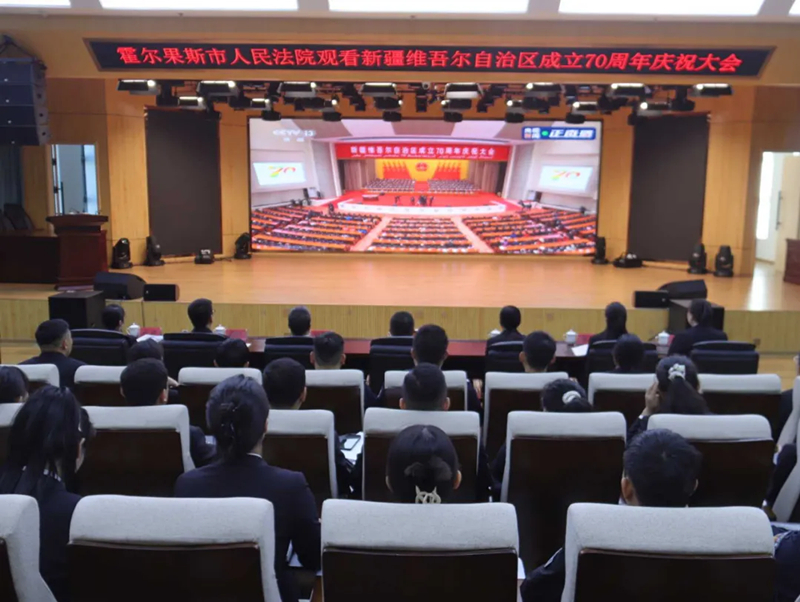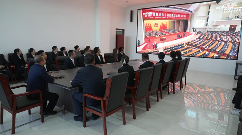霍尔果斯市人民法院干警集中观看了庆祝大会实况,在新疆的发展历程中,他们共同见证并参与其中,以司法之力守护着口岸城市的活力。