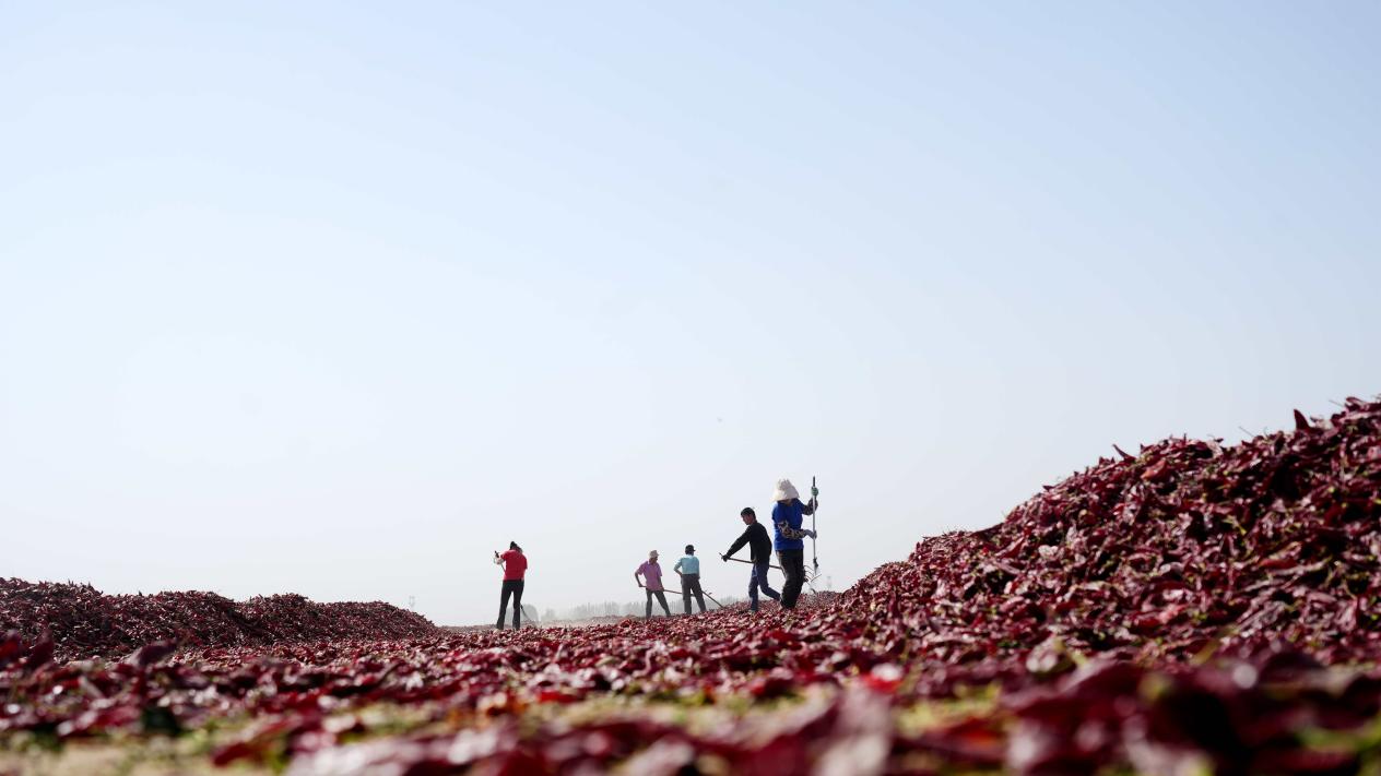 温宿县佳木镇辣椒晒场一派繁忙(赵新昌 摄)