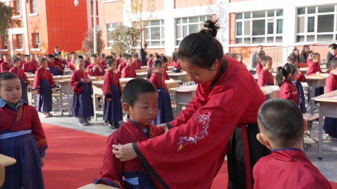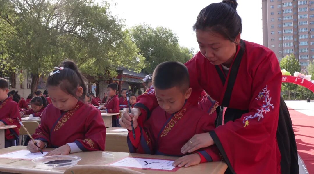 活动还举行了一年级“开笔礼”仪式,孩子们在师长的引导下,依次完成了“正衣冠”“朱砂启智”“击鼓鸣志”“启蒙描红”“感恩老师”和“集体吟诵”等传统仪式。(记者 永程帆)