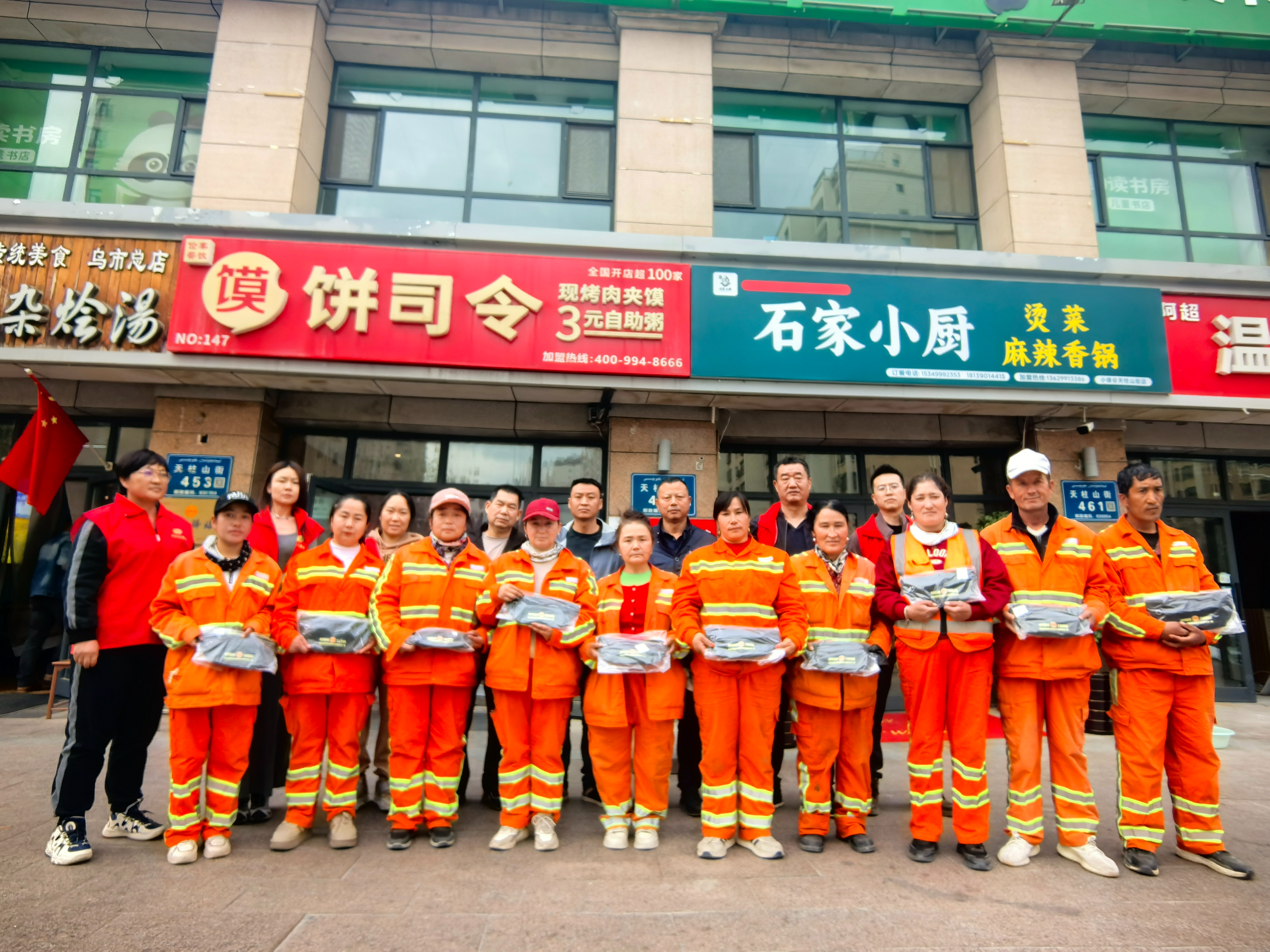 10月13日上午,在天柱山街饼司令工会驿站门口,香山街社区联合高铁街道工会联合会、街道司法所共同举办了“法护新业态 工会在身边”——环卫工人专场精准普法活动。来自辖区的20余名环卫工人参加了此次活动。