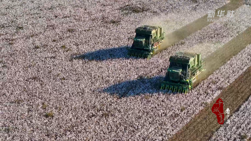 近日,新疆昌吉州近300万亩棉花成熟吐絮,雪白的棉絮挂满棉枝,采棉机械在田间穿梭,趁着晴好天气抓紧采收。