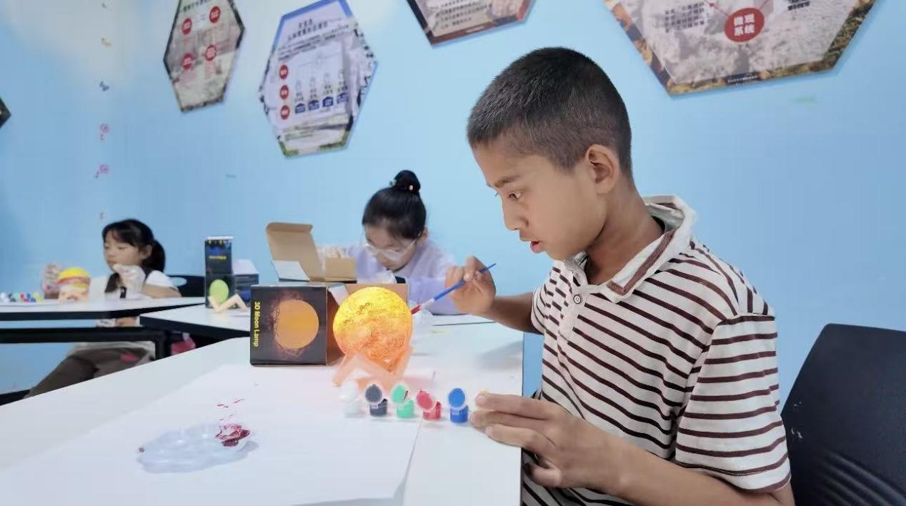 参加活动儿童正在手绘星球灯(陈为康 摄)