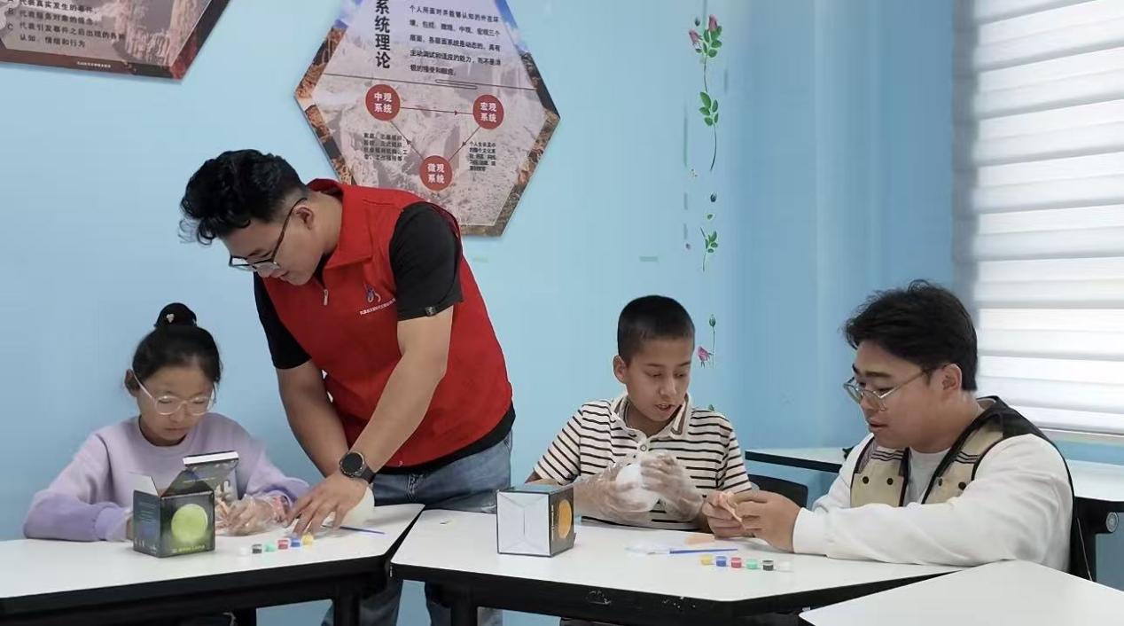 “我画的是‘友谊星球’,要送给上次帮我讲题的小艾!”在作品分享环节,10岁的阿布力克木举着点亮的星球灯说道。借助小组动力学理论,志愿者引导孩子们分组创作、轮流分享,每位孩子均主动与至少2名同伴交流想法,原本腼腆的孩子也逐渐打开话匣子。当10盏定制星球灯同时亮起,暖光透过彩绘灯罩洒在笑脸之上,宛如一片微型星河在社区活动室流淌。