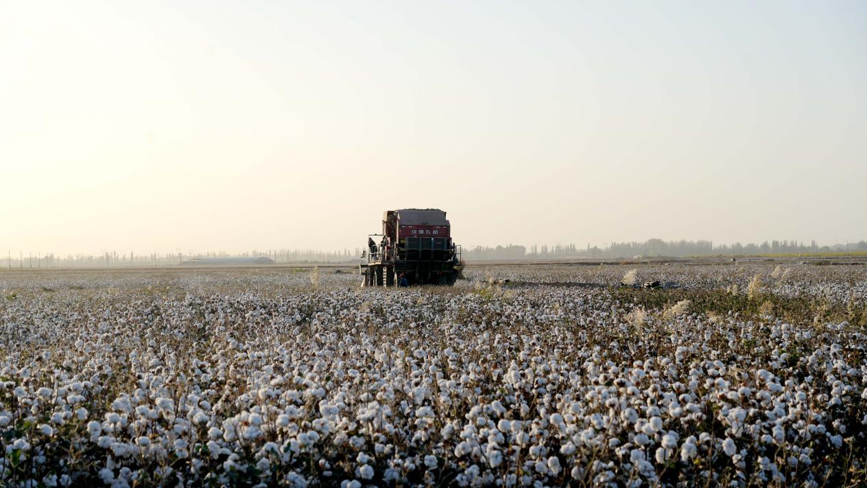金秋十月,温宿县66万亩棉田陆续进入采收季。无垠的田野上,雪白的棉桃迎风吐絮,数台自走式打包采棉机整齐穿行,一次性完成采摘、压缩、打包等工序,将一朵朵棉花变成一颗颗重约两吨的“金蛋蛋”。轰鸣的机械声里,一幅大规模、标准化、智能化的现代农业丰收画卷,正在天山南麓徐徐展开。