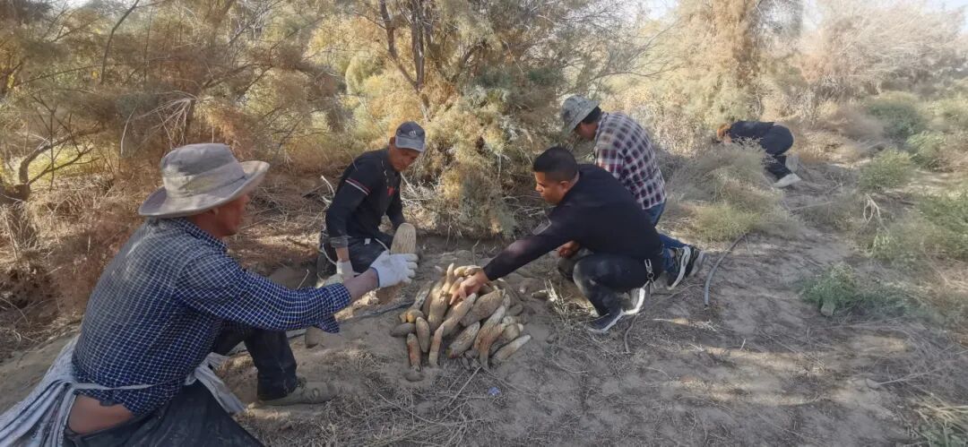 大芸寄生在红柳根部,一次接种可连续采收5-7年。拜科日的基地常年固定用工26人,每人每月工资4500元;采挖高峰期再雇30名临时工,日薪150元,整个采收期人均可增收7000多元。