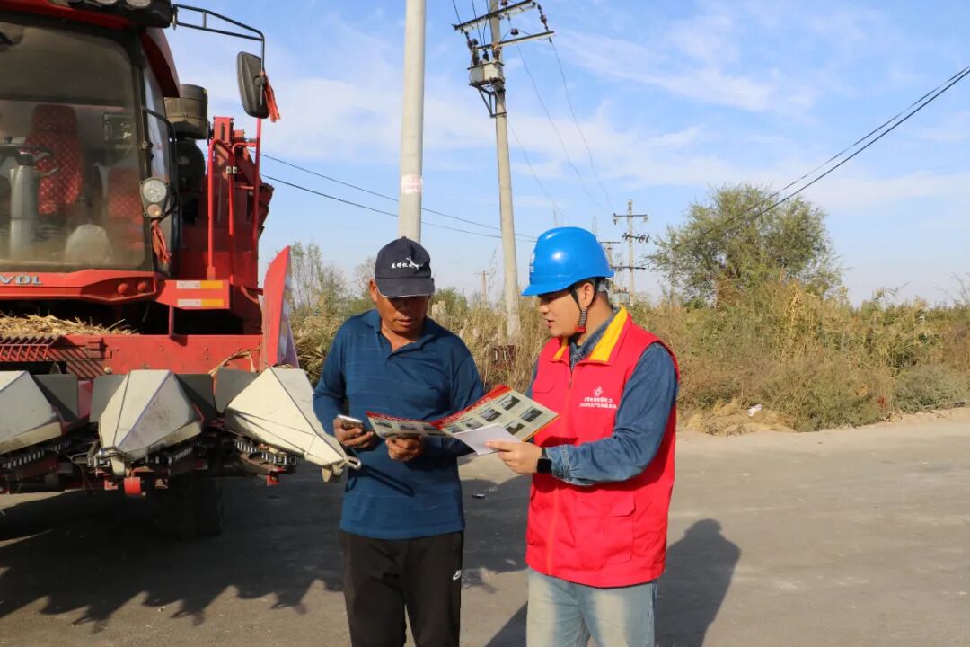 金秋十月,霍尔果斯乡村铺展丰收画卷,田间收割机轰鸣作业,粮食加工厂机器忙碌,处处涌动着“颗粒归仓”的热潮。为保障秋收期间电网安全稳定运行,国网霍尔果斯市供电公司组织员工深入辖区各村(社区),开展护粮保电专项宣传。