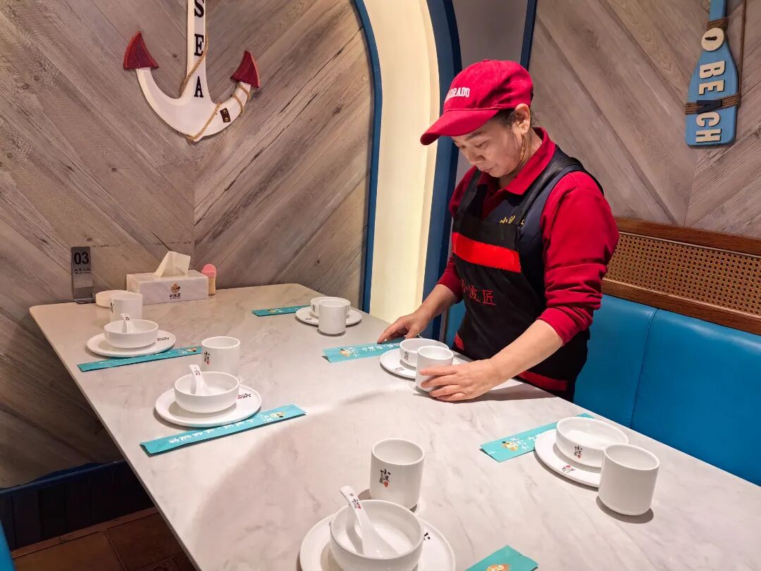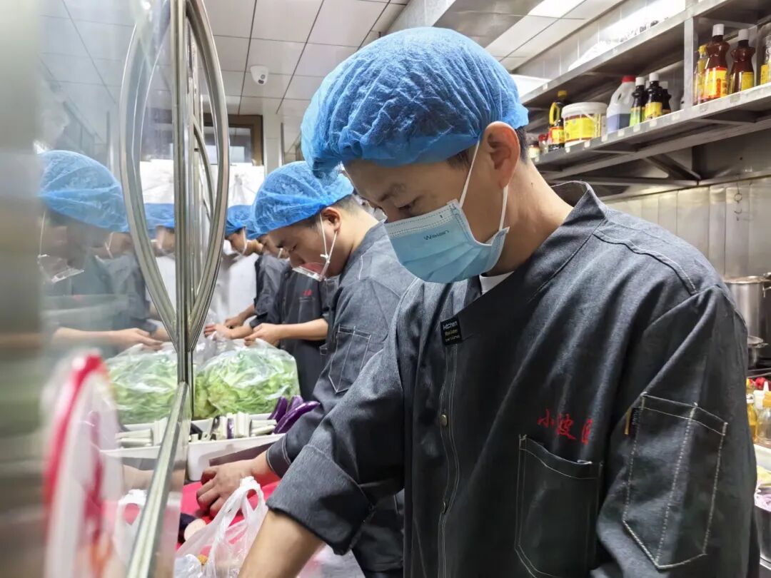 同一天,在可克达拉市小波匠家常菜餐厅后厨内,同样是一派火热的备餐场景,厨师们熟练地切配食材,锅铲与铁锅碰撞出富有节奏的声响,各种家常菜肴的香气在厨房内交织弥漫。餐厅工作人员各司其职,以最好的状态迎接即将到来的午餐高峰期。
