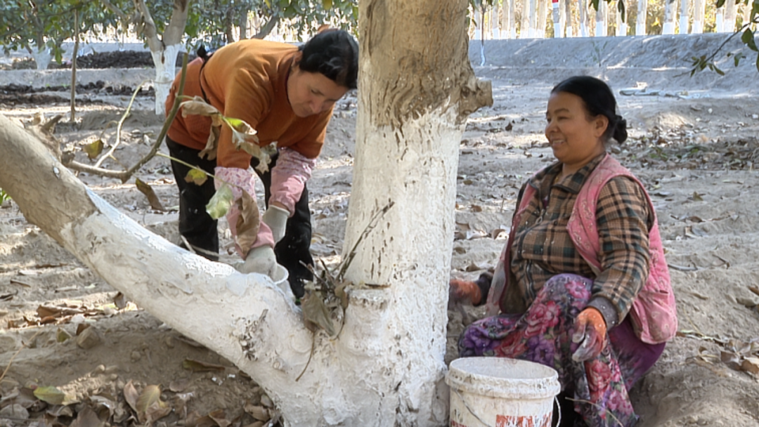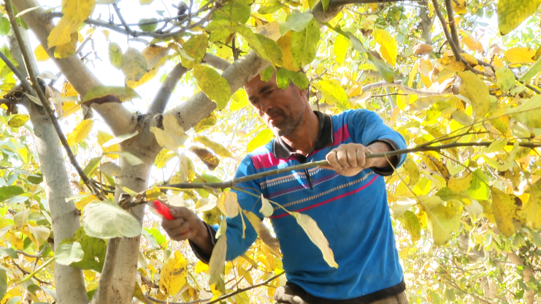 依其艾日克镇恰先拜巴扎村村民佐热古丽·阿巴斯说:“去年做好了果树管理,今年我们家的20亩核桃收成不错,今年我们也会做好核桃树的修剪工作,争取提高明年的产量,增加收入。”