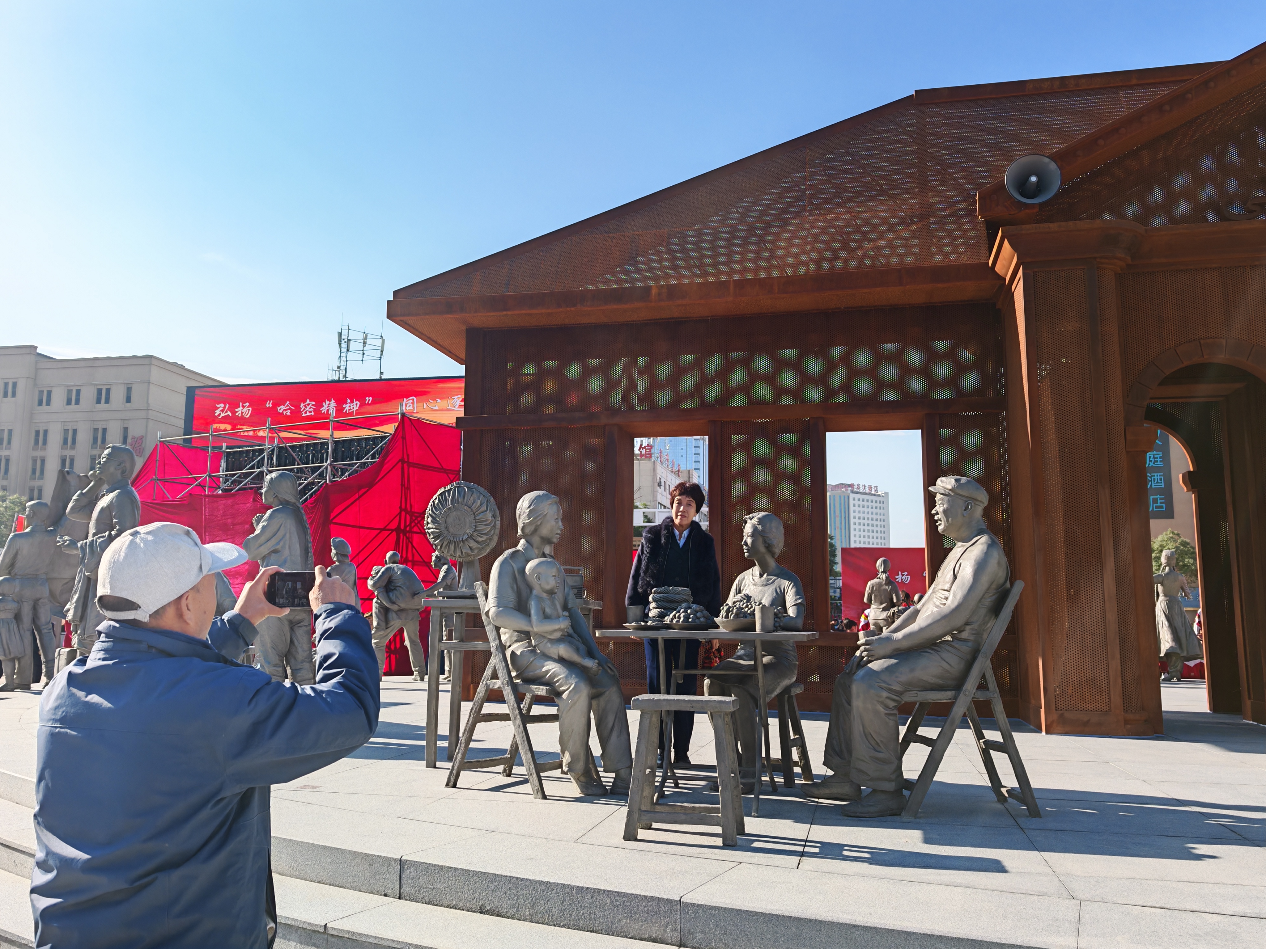10月18日,哈密市在哈密火车站广场举行了以“弘扬‘哈密精神’、同心逐梦未来”为主题的“哈密精神”情景式公共艺术作品落成仪式。普拉提·尼亚孜摄