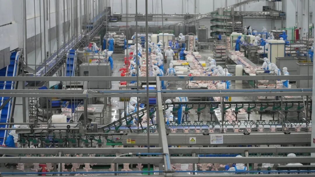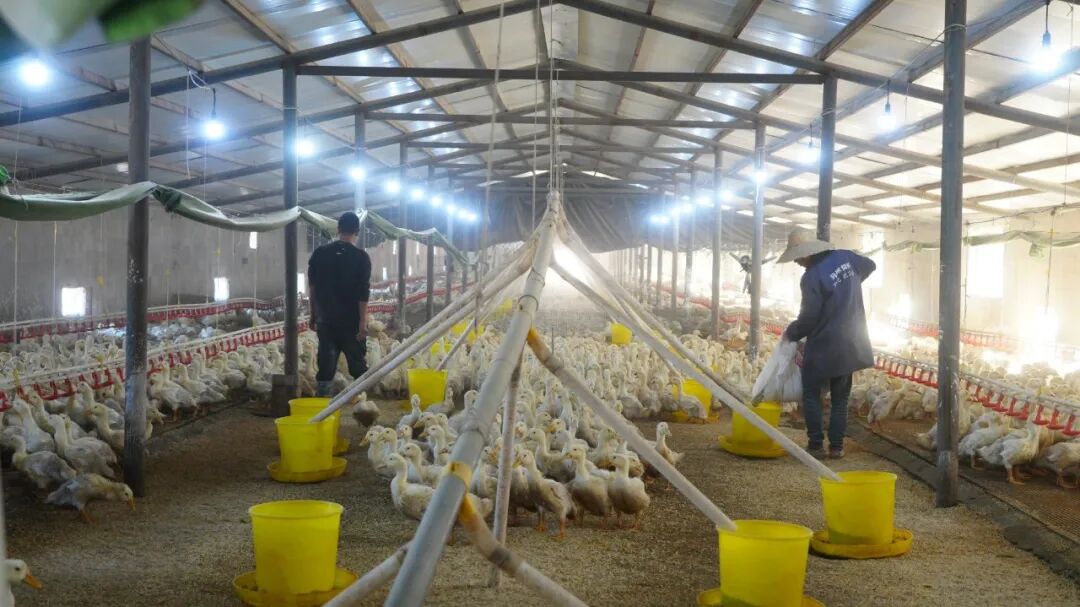 项目投产后效益显著,基地依托优良品种与自动化饲喂技术,肉鸭养殖周期从80天缩短至50天。屠宰加工基地两条智能化流水线覆盖全环节,日处理鸡12万只、鸭6万只,构建起“幼鸭孵化—饲料加工—肉鸭养殖—屠宰加工”全产业链闭环,形成上下游联动格局。