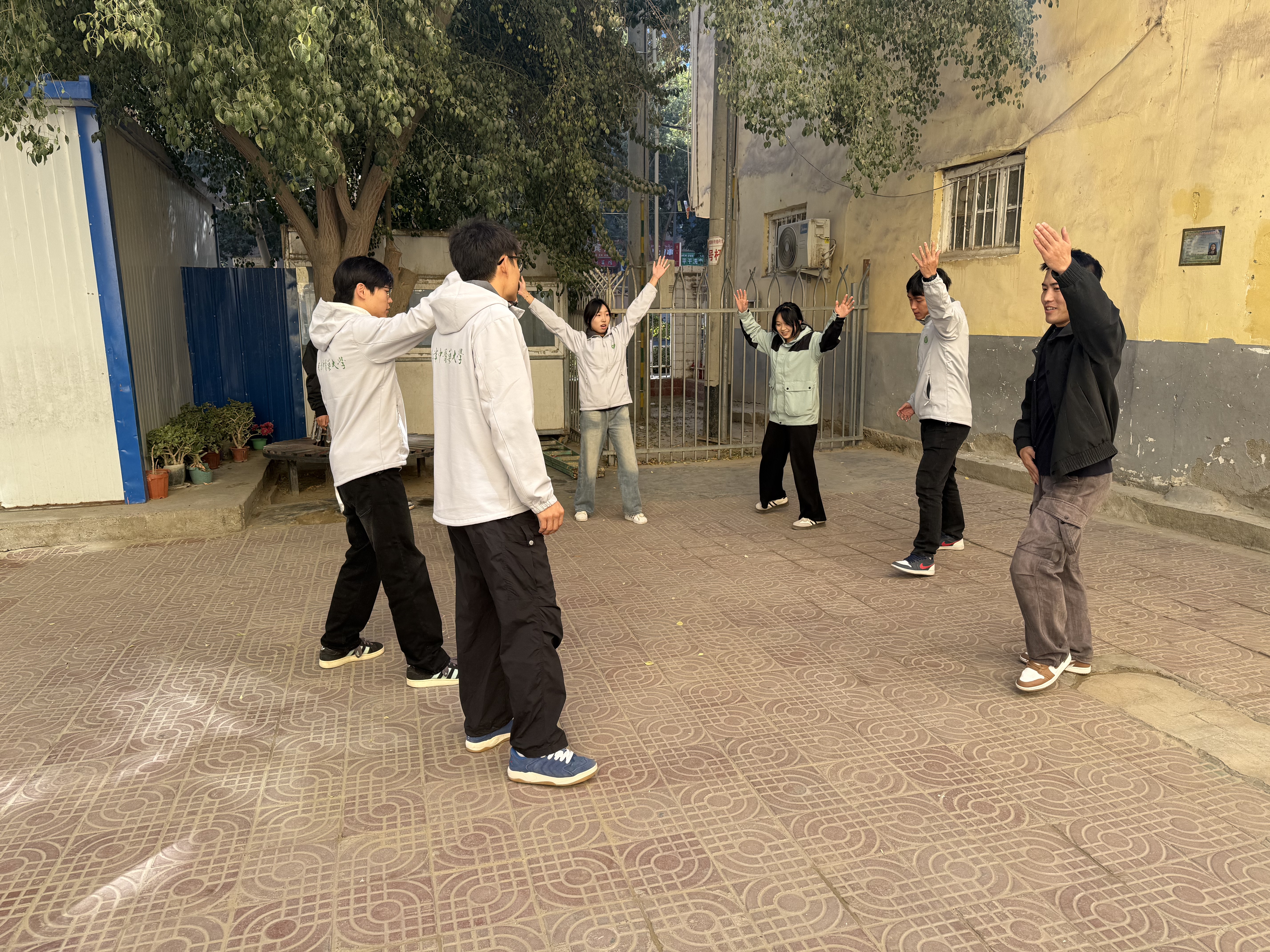 针对各年级学生身体发育特点,支教团将复杂动作简化为易学易记的基础动作,并通过韵律节奏激发参与兴趣,系统推进创编工作。为确保动作的科学性与教育性,团队多次征求本校中医专家、体育教研组、当地小学体育教师及团队成员的意见建议。经过多轮论证与修改完善,支教团成立了音乐动作组、视频制作组等专项小组,反复打磨细节,最终编成了“韵律—太极—穴位”相结合的中医律动操。