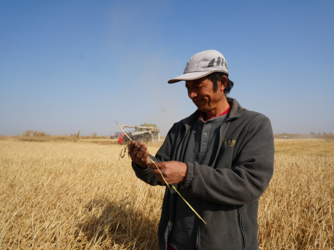 魏兴种植水稻已有九年,其稻田曾是荒芜盐碱地,在团党委支持下,他改良土壤、引进良种,实现“盐碱地变良田”,今年预计亩产超600公斤,还新增了稻花香系列品种。