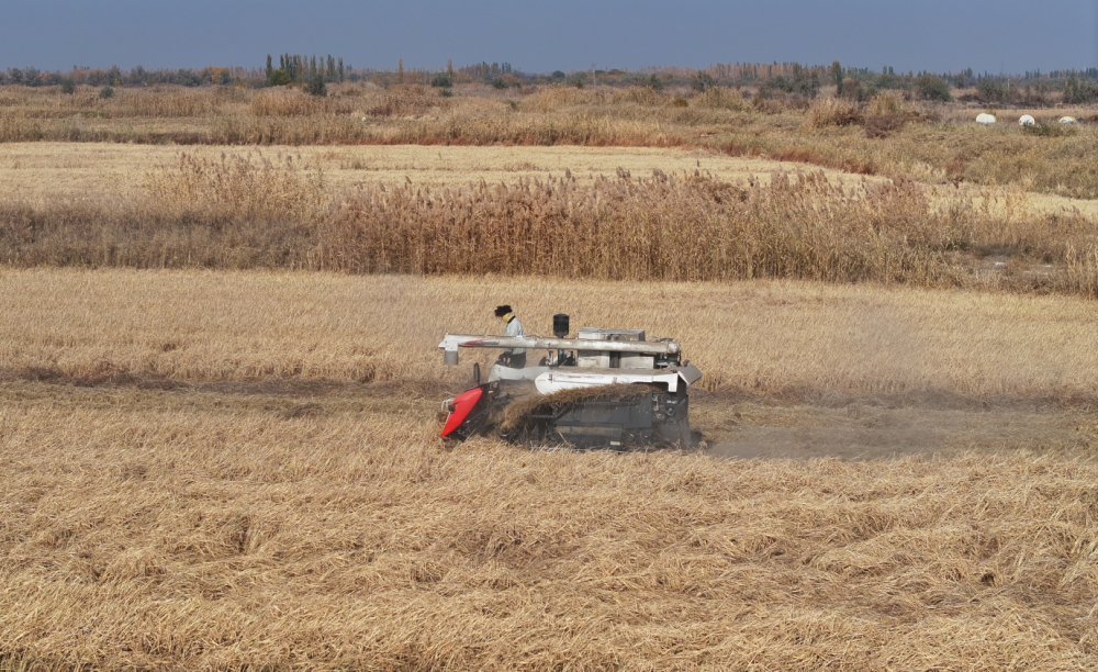 金秋时节,四师可克达拉市六十七团850余亩水稻进入收割期,金黄稻浪翻滚,种植户抢抓农时组织收割,确保颗粒归仓。