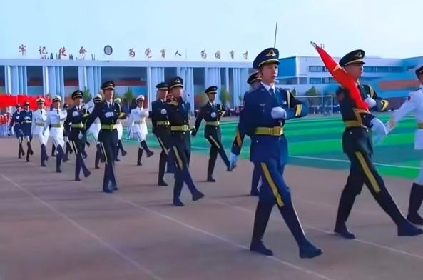 开幕式上,护旗方队身着挺拔制服、迈着铿锵有力的步伐护卫国旗入场,他们身姿挺拔,目光如炬,肩负着守护国旗的神圣使命。鲜艳的五星红旗在前方引领,紧随其后的是鼓号队,鼓点如惊雷滚过绿茵,号音似剑刺破长空。以整齐的方阵踏响运动会的开篇序曲。