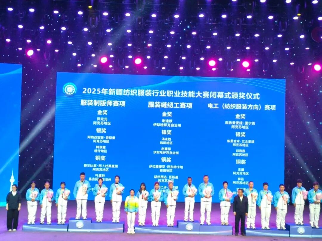 10月21日,新疆维吾尔自治区纺织服装行业职业技能大赛落下帷幕,霍尔果斯市技工学校荣获服装缝纫工金奖和时装技术(服装3D数字化设计)优胜奖。