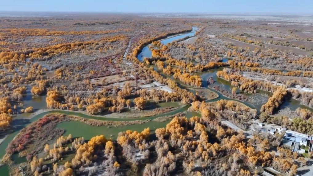 新疆轮台县:胡杨金黄 群鸟竞渡-新华网