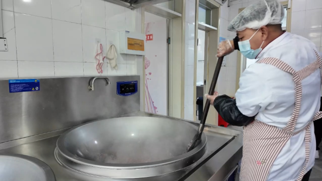 走进沙湾市第四幼儿园的食堂,暖意与香气扑面而来。工作人员们各司其职,有的专注煮制筋道的面条,有的手持锅铲娴熟翻炒,崭新的电灶火力全开,滋滋作响的食材在锅中翻滚,诱人香气弥漫在整个厨房。