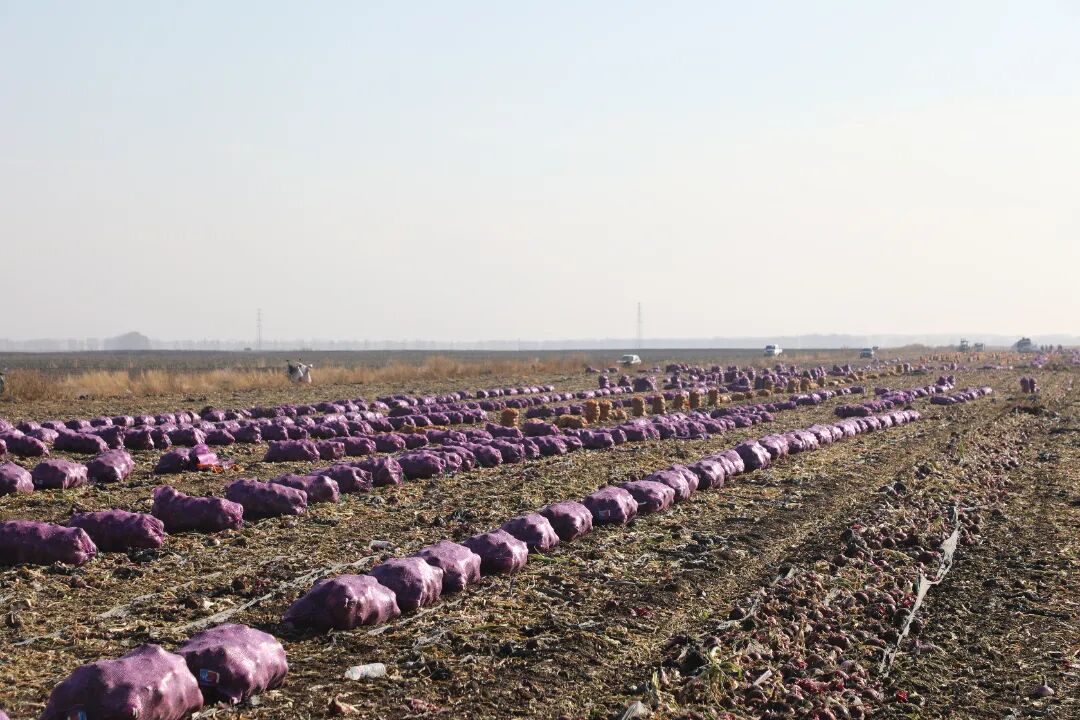 10月28日,笔者走进七十六团五连种植户金勇杰的200亩洋葱地,60余名工人正在地里挖拣、装袋洋葱。装满洋葱的袋子一排排立在田间地头。