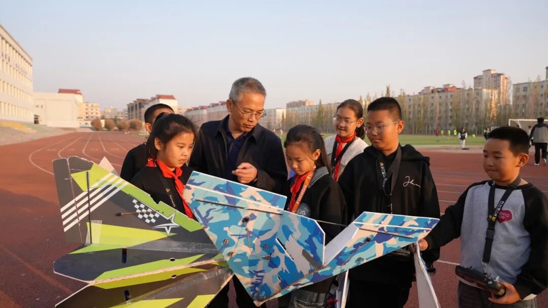 在六十二团中学,科技创新类社团同样成为学子们探索未知的乐园。操场上,学生们围在一起,在教师李远清的指导下认真进行飞机的组装和调试。作为社团指导教师,李远清始终秉持“兴趣引路、技能赋能”的理念,不仅耐心传授航模组装与操控技巧,更致力于为团场学生搭建走向广阔天地的桥梁,让科技梦想生根发芽。