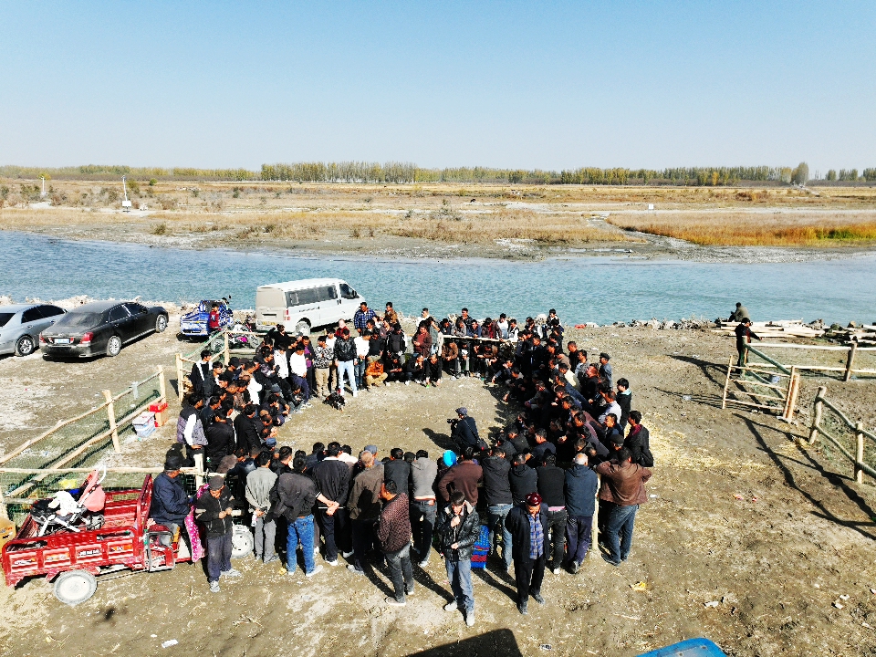 11月1日,在温宿县恰格拉克乡喀拉都维村库托草原上,当地村民和游客观看斗鸡比赛。(赵新昌 摄)