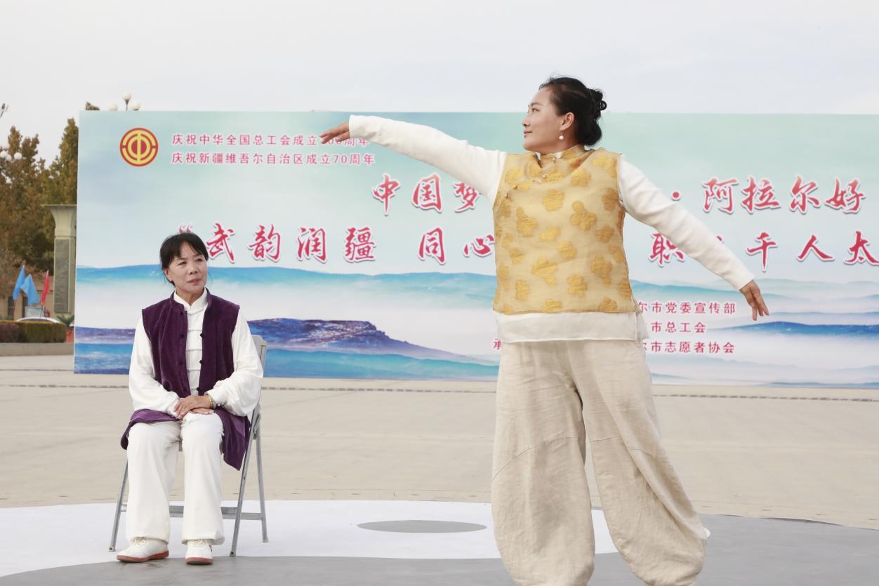 近日,在新疆阿拉尔市三五九旅屯垦戍边纪念碑前的广场上,“中国梦・劳动美・阿拉尔好—武韵润疆 同心筑梦”职工千人太极拳展演盛大举行。此次活动由新疆兵团第一师阿拉尔市党委宣传部、第一师阿拉尔市总工会联合主办,第一师阿拉尔市志愿者协会承办,以中华优秀传统文化为纽带,为各族群众献上兼具文化底蕴与时代气息的视听盛宴。