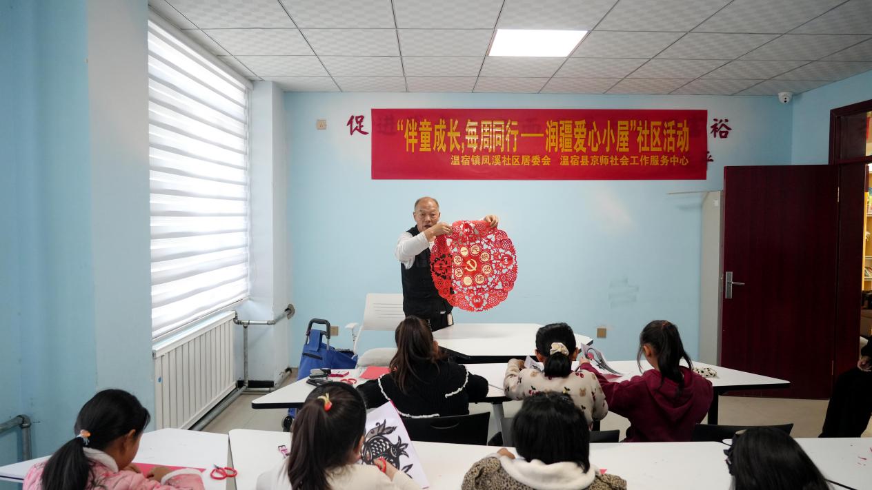 “孩子们看,咱们新疆是个多民族大家庭,各民族就得像这石榴籽一样,紧紧抱在一起才够甜,对不对?”11月1日上午,温宿县温宿镇凤溪社区居民活动室内,63岁的马新枣手上拿着一颗刚剪好的石榴图案笑着向孩子们讲道。话音刚落,十余名各族孩童立刻拿起剪刀,跟着马新枣的手势认真复刻。