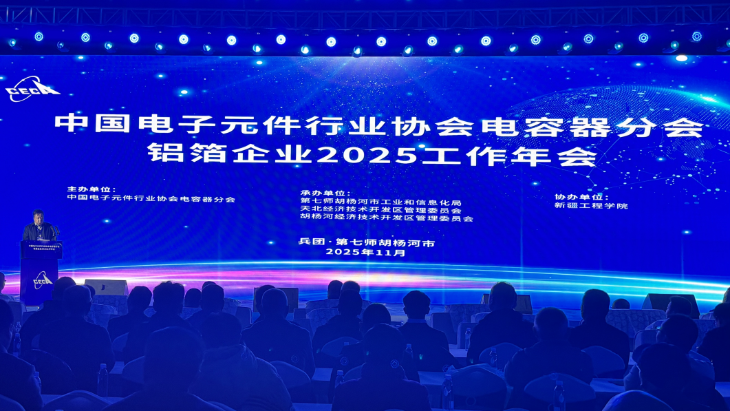 11月6日,中国电子元件行业协会电容器分会铝箔企业2025工作年会在新疆生产建设兵团第七师天北经济技术开发区举行。
