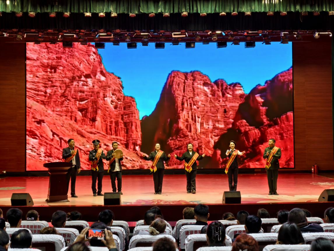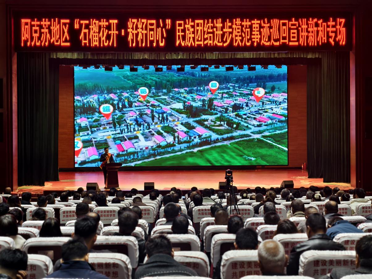 11月6日,阿克苏地区“石榴花开·籽籽同心”民族团结进步模范事迹巡回宣讲团,在新和县会议中心举行专场宣讲。来自全县各行业的600余名干部群众现场聆听了模范代表的故事,在一个个温暖的“共家共心”故事中感受民族团结的深厚情谊。