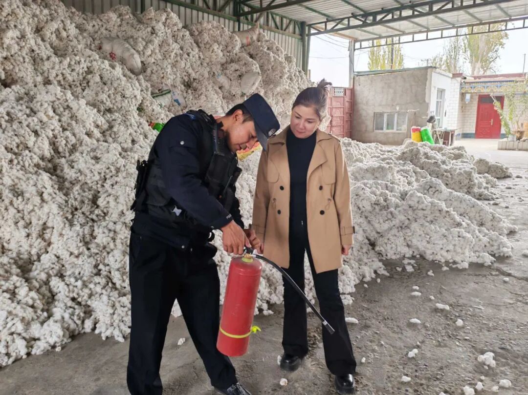 11月6日,塔什艾日克镇派出所组织民辅警走进辖区棉花厂,开展针对性消防安全宣传。民辅警以通俗易懂的语言,向工作人员讲解火灾危害、日常防火要点、初期火灾扑救及逃生自救技巧,现场演示灭火器正确操作方法并指导实操练习,确保工作人员熟练掌握灭火技能。同时,民辅警细致排查厂区消防设施完好度与疏散通道畅通情况,针对发现的隐患逐一提出整改建议。