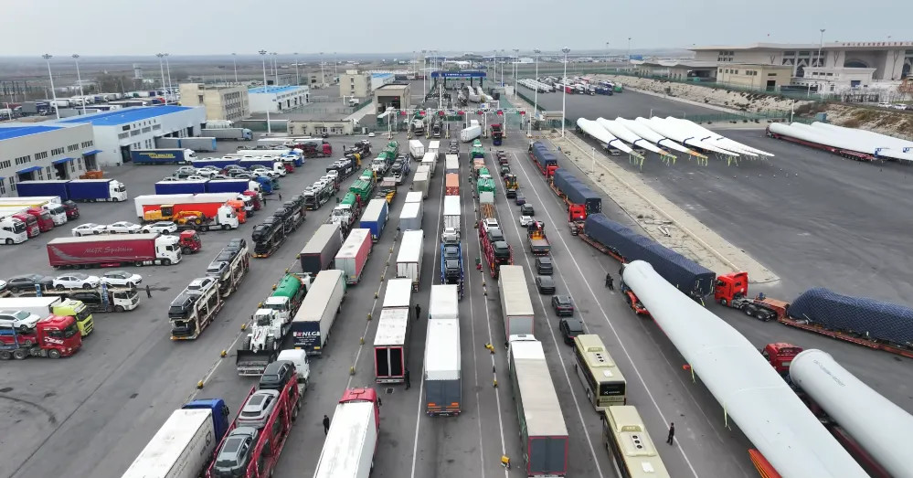 一辆辆商品车跨越国门,一列列中欧班列驰骋欧亚大陆,霍尔果斯这座百年口岸正以全方位的开放姿态,将“驼队经过的地方”变成积累财富的机遇之地。