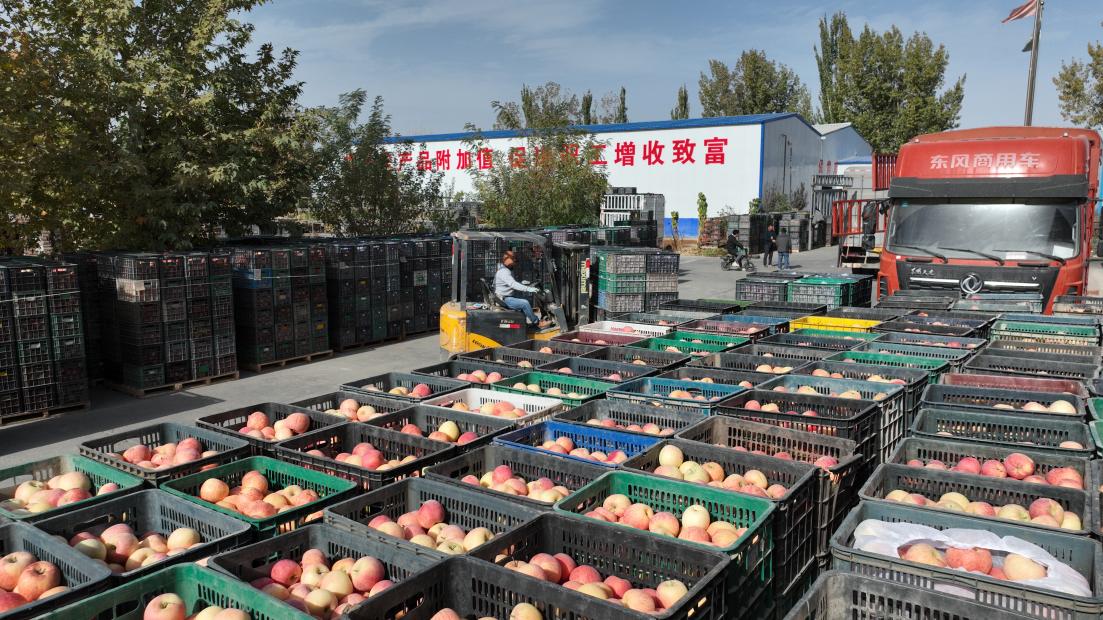 作为当地种植苹果树最早的连队之一,二连的种植规模已超过1万亩。然而,过去依赖传统红富士“单打独斗”的模式,满足不了市场多样化需求,销量连年下滑,产业转型发展迫在眉睫。 在二连党支部引领下,社员共同出资建成冷链仓库,还借助援疆资金引进苹果分选生产线。依托龙头企业的客商资源和网络销售渠道,合作社构建起“生产有基地、储存有冷链、果品有分选、销售有渠道”的全产业链模式,不仅带动周边120户农户增收,还辐射3000亩果园,让小农户“融入”大产业。