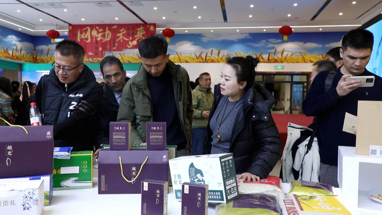 在第一师阿拉尔市南疆农副产品区域展销中心,考察团成员了解当地农副产品资源。胡彩艳 摄