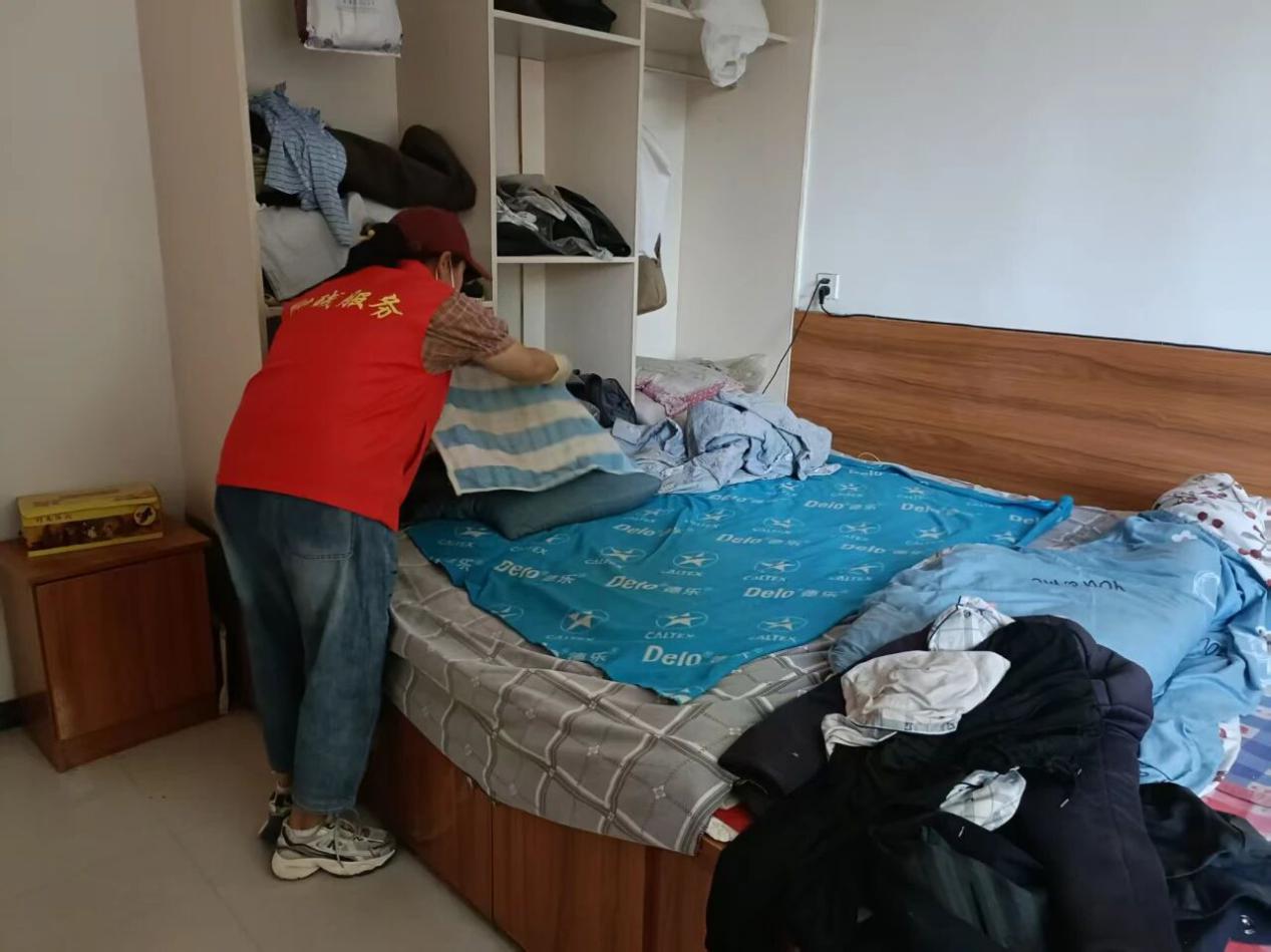 (残联干部为行动不便老人打扫卫生)
