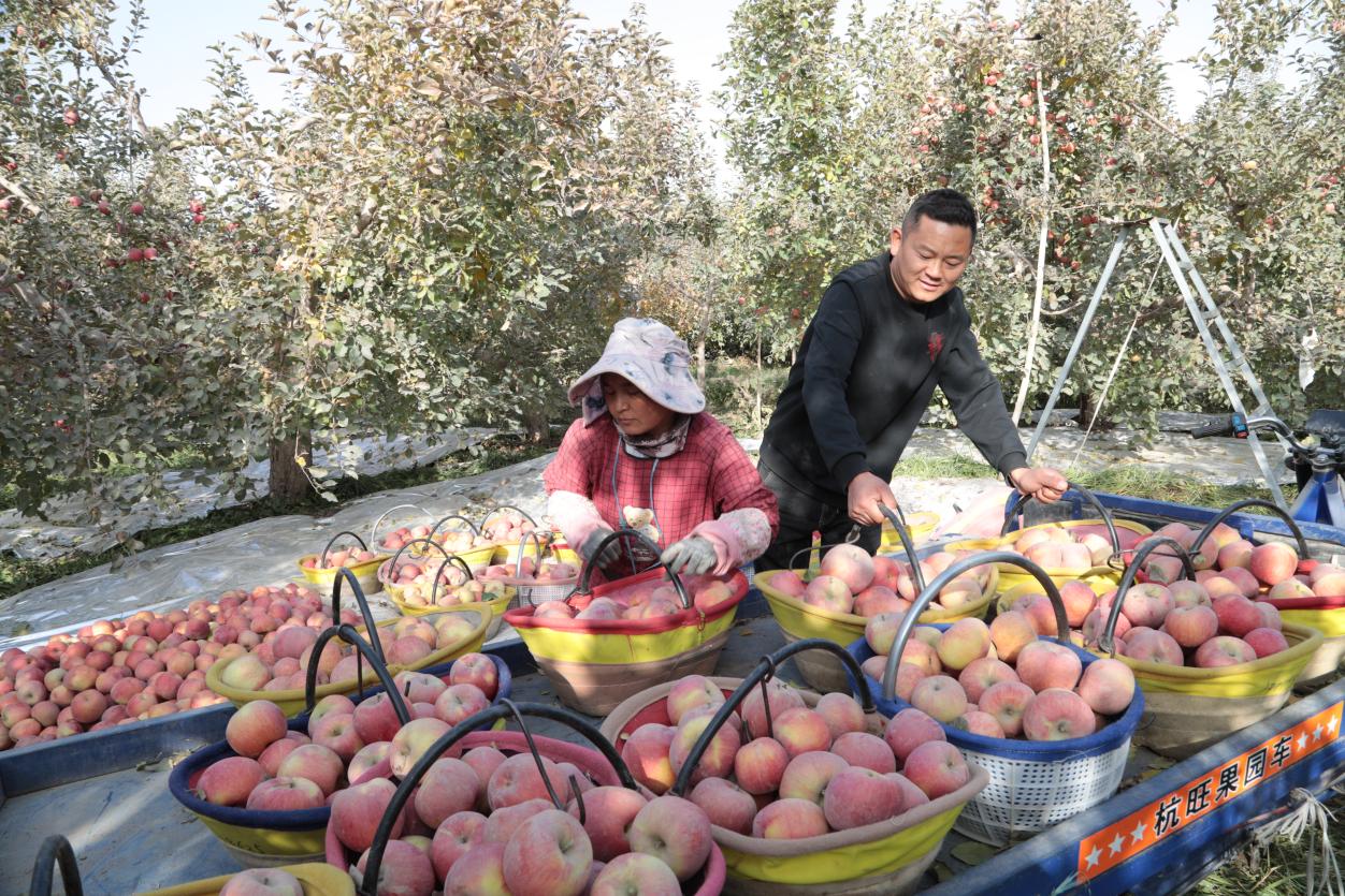 今年,五团沙河镇苹果总产量将突破28万吨,动职工人均增收3万余元。(朱志升 胡彩艳 马高坤)